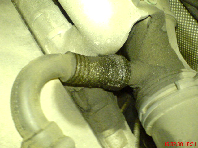 To nic takiego odma ci sie spocila - poprzez ten przewod wyrownywane jest cisnienie w ukladzie korbowym i wydostaja sie tamtedy opary oliwy w wiekszym lub mniejszym stopniu (jak przelejesz oliwe to nadmiar jest wywalany) Mozesz to spokojnie rozebrac wyczyscic i uszczelnic albo isc krok dalej i pozbyc sie polaczenia odmy z dolotem - wpisz odma w szukajke dowiesz sie wiecej.Toledziak napisał(a):No właśnie i zobaczyłem coś co mi się nie spodobało.Mianowicie na około giętkiego przewodu dolotowego do zaworu, tuż przy rurze dolotowej (za puszką filtra) mam mokro od oleju.Tzn tak to wygląda (fotka obrazująca problem). Co z tym zrobić??Oliwy nie było za dużo,normalny stan.Auto użytkowane zgodnie z zasadami.