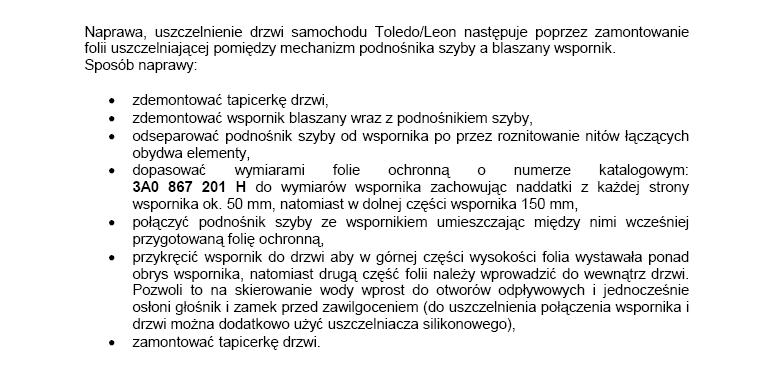 Dla potomnych tak naprawę tej usterki przewiduje Seat