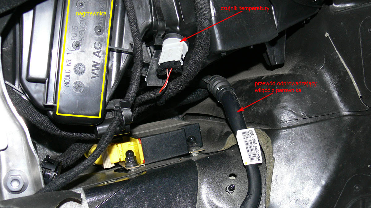 Jest dokładnie tak jak napisałeś, wielkie dzięki za twojego posta, dzięki niemu udało mi się zlokalizować tą rurkę odprowadzającą wilgoć z parownika, należy jedynie zdemontować osłonę z plastiku od lewej strony nóg pasażera (jest na zatrzaski, nic nie trzeba odkręcać) a potem odchylić z lewej strony wykładzinę i widać taką czarną rurkę z gumy. Ma ona na oko 20 kilka cm długości, od góry kończy się "kolankiem" które wchodzi w obudowę parownika a jej dolna część wchodzi w podłogę. Obydwie strony rurki montowane na wcisk, więc można ją łatwo zdemontować i przeczyścić. W miejsce w które wchodziło ww "kolanko" należy wprowadzić wężyk od środka odgrzybiającego i zaaplikować preparat. Oczywiście przed zabiegiem dobrze jest osuszyć porządnie parownik, poprzez ustawienia ogrzewania na maksa przy zamkniętym obiegu na ok 10 min.